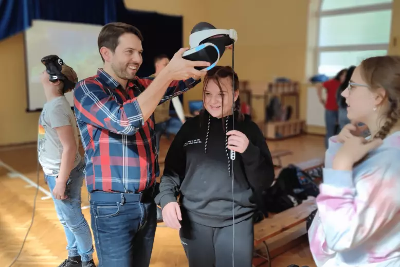 Szkolenie dla młodzieży podczas, którego w bezpieczny i kontrolowany sposób poznawali świat wirtualnej rzeczywistości, rozbudzając wyobraźnię, ciekawość świata oraz podnosząc kompetencje cyfrowe.